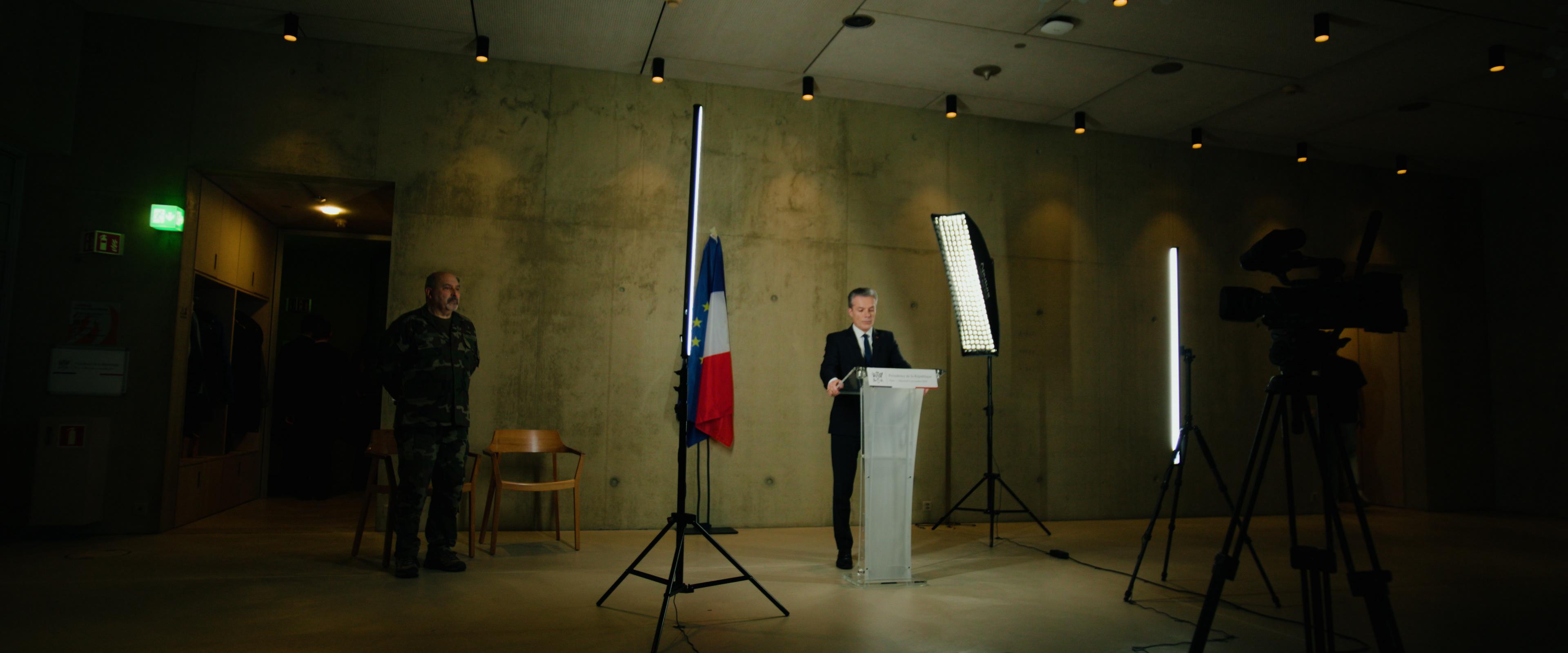 L’idée du film est née d’une interrogation vertigineuse : que reste-t-il de l’humain lorsque l’intimité disparaît ? Pour y répondre, nous avons voulu mêler deux dimensions. La première, institutionnelle, qui plonge le spectateur dans les arcanes clots du pouvoir, où chaque décision est un dilemme moral. La seconde, intime, qui raconte la fragilité d’individus confrontés à une exposition qu’ils n’ont jamais choisie. Ce double regard permet de donner au récit une tension à la fois politique et émotionnelle, en plaçant côte à côte la grande histoire et les petites vies.